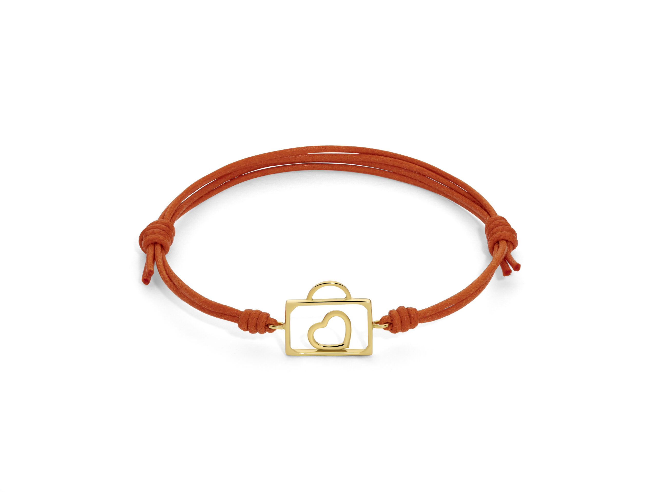 Bracciale cordino con valigia cuore a filo ORO 750‰ 0,72 g – oro Giallo