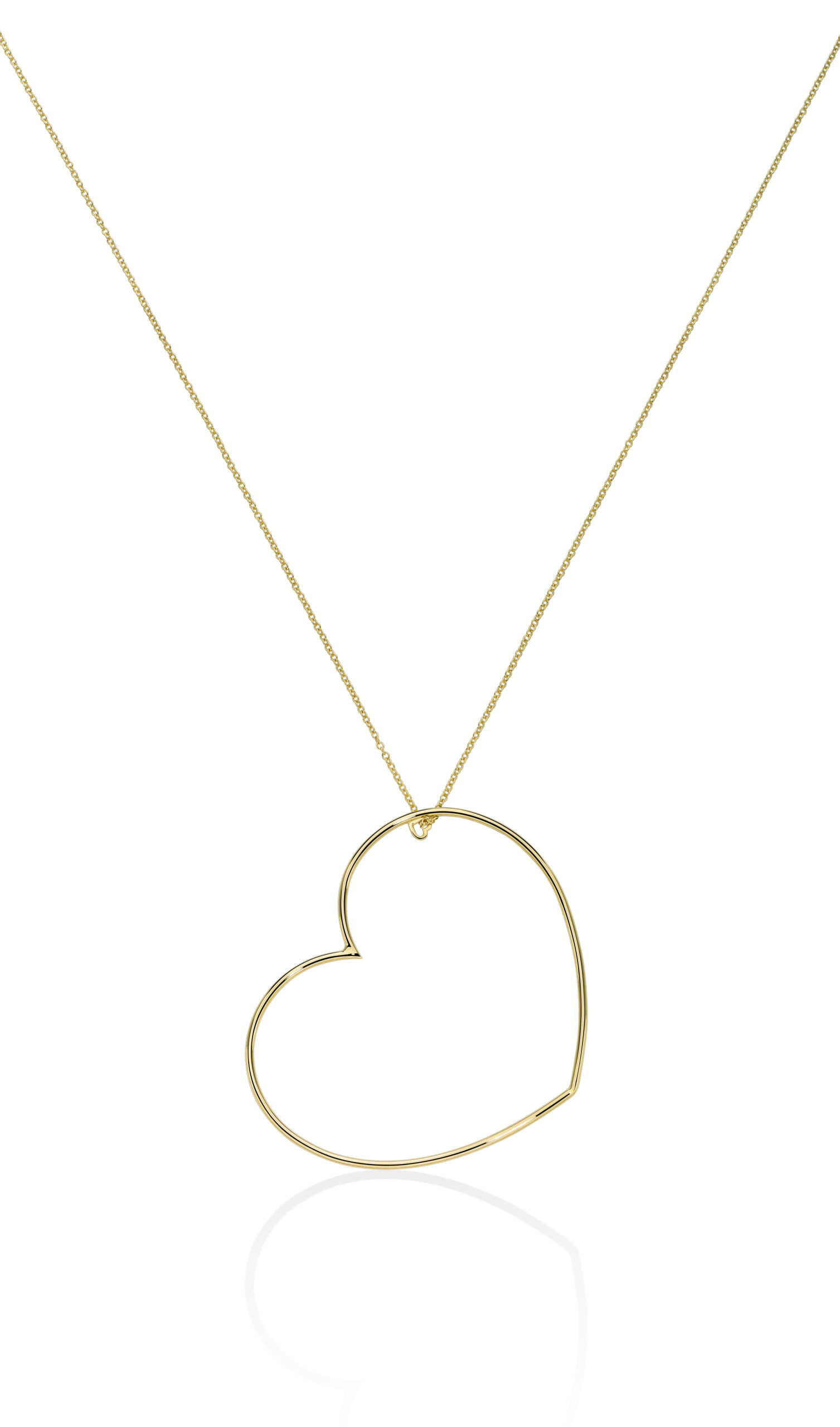Collana lunga con cuore canna vuota pendente – lunga 90cm ORO 750‰ 6,75 g – oro Giallo