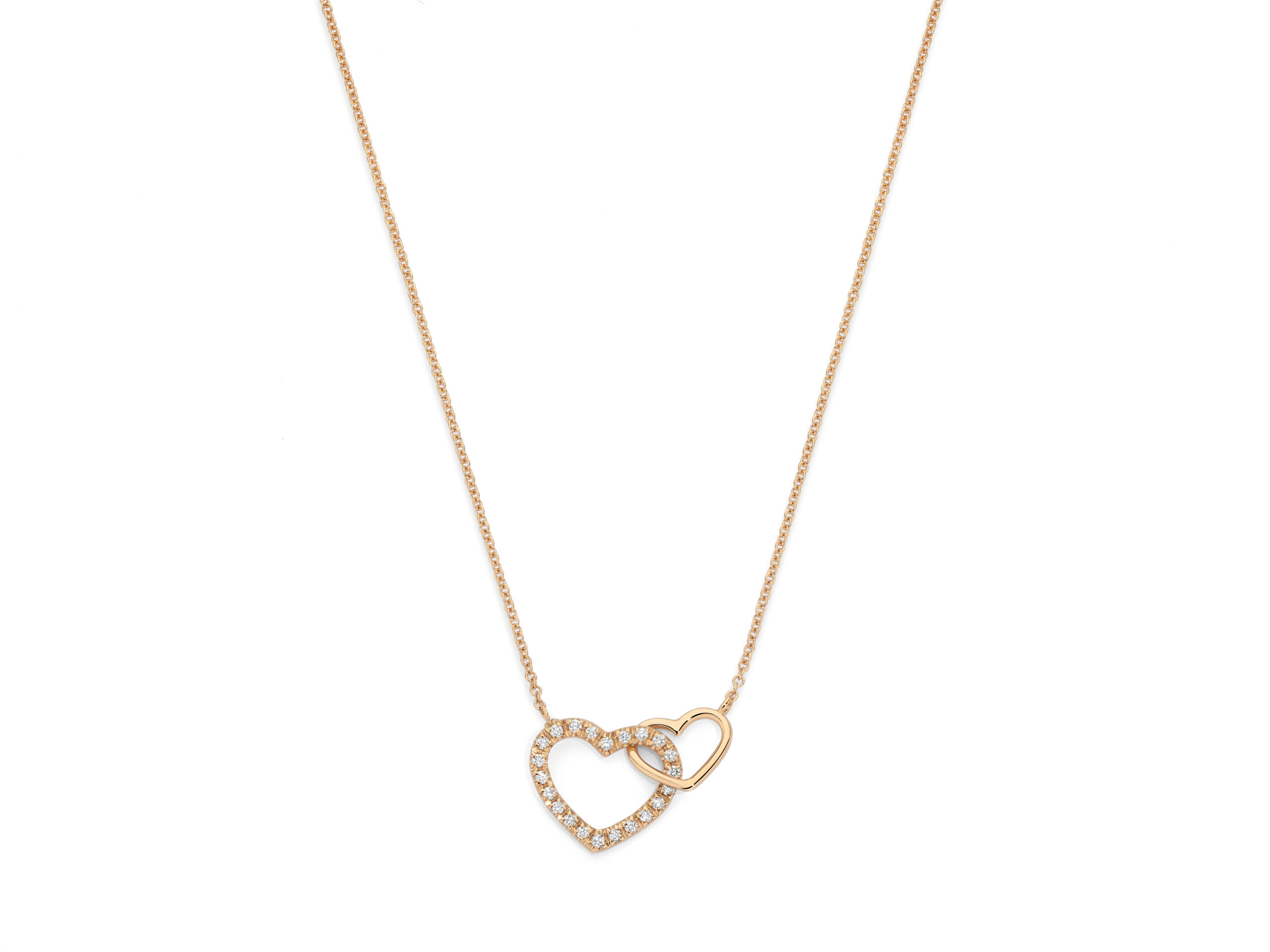 Collier due cuori incrociati – uno con brill oro 750‰ g. 2,56 – ct. 0,165 – oro Rosa