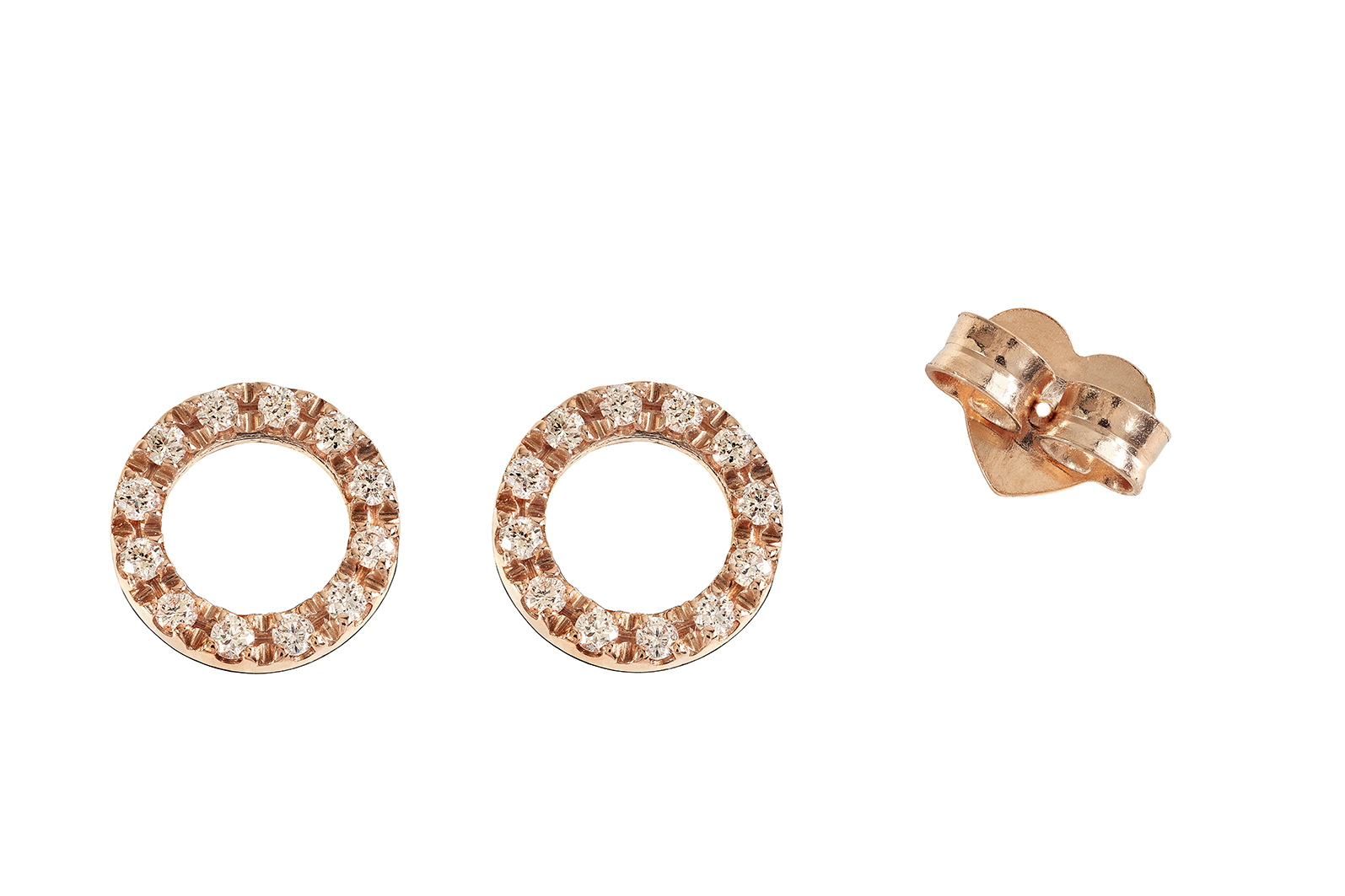 Orecchini tappabuco bolla con contorno di diamanti oro 750‰ g. 1,46 – ct. 0,12 – oro Rosa