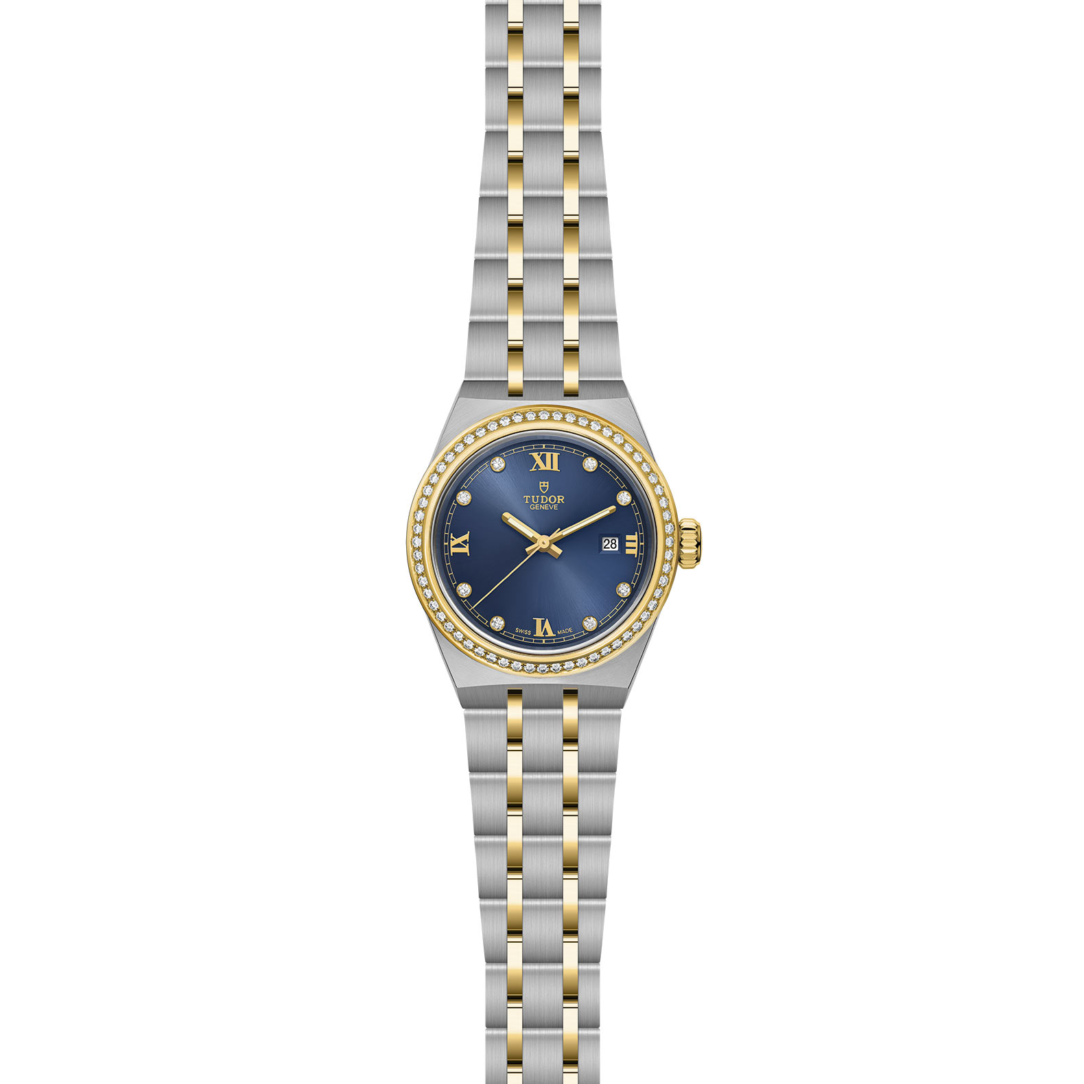 Corona di carica a vite con logo TUDOR. Acciaio rivestito da uno strato di oro giallo di 0,1 mm